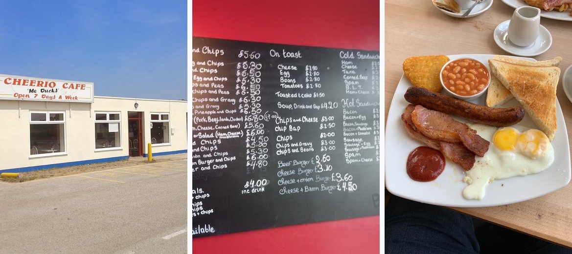 We stumbled across The Cheerio Café while feeling a bit peckish on our way to a holiday cottage in Fakenham — and what a find it turned out to be! Now, the outside might not win any beauty contests (it’s got that “seen-better-days” charm), but don’t let that fool you. Step inside and you’re greeted with a spotlessly clean interior that feels like a warm hug from the 1980s — think simple seating and a chalkboard menu that gives the place an old-school, no-nonsense charm. The food? Absolutely fantastic. I tucked into a generously sized bacon cheeseburger with chips — complete with not one, not two, but three rashers of bacon! Meanwhile, my mum and sister each had an omelette and chips. The omelettes were massive, taking up half the plate and folded beautifully. Everything was cooked fresh and tasted delicious. Plates cleaned. No crumbs left behind. We also had cappuccinos made with fresh coffee, which hit the spot nicely. While the machine used powdered milk (a tiny drawback), it still made a decent brew. And if you’re an instant coffee fan, you’re in luck — they had a solid variety to choose from. All in all, The Cheerio Café is well worth a visit if you’re in the area. Hearty portions, friendly service, and great value. We were so full we didn’t even need dinner that evening. Big thanks to the lovely staff for a tasty and satisfying meal — we’ll be back!
